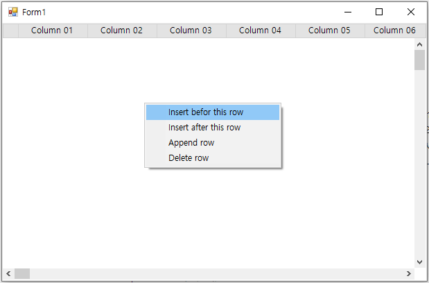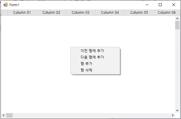 지금까지 만든 Grid 틀에 Row를 생성하기 위한 Interface인 Context Menu를 만들어 보기로 하자.