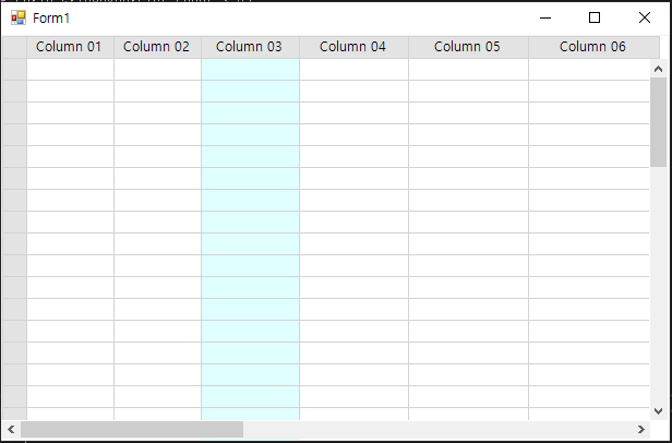지금까지는 마우스 좌측 버튼 클릭 시 마우스 X좌표 위치에 대응하는 컬럼의 Inxex 값을 찾기 위한 로직을 만들었고, 실제 사용자에게 선택된 컬럼을 색상으로 보여주는 부분을 추가해야 실제 WANIGrid Control 실행 시에 사용자와 직접 상호작용하면서 선택된 컬럼 영역을 다이나믹하게 보여주게 된다.