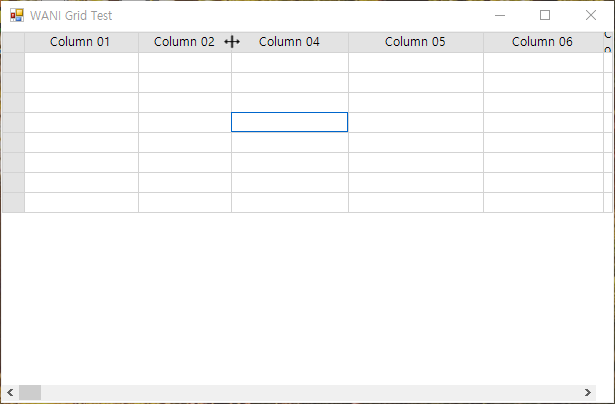 Grid Header의 컬럼(Column)과 컬럼(Column) 사이의 경계 부분을 마우스 좌측 버튼 클릭 후 좌/우로 이동하면서 컬럼의 폭을 조정할 수 있는 기능을 구현해 보기로 하자.